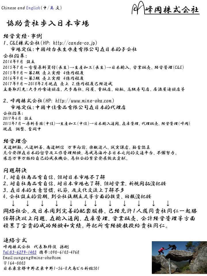 協助貴社歩入日本市場